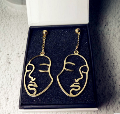 Abstract Facial Makeup Silver Pin Earring