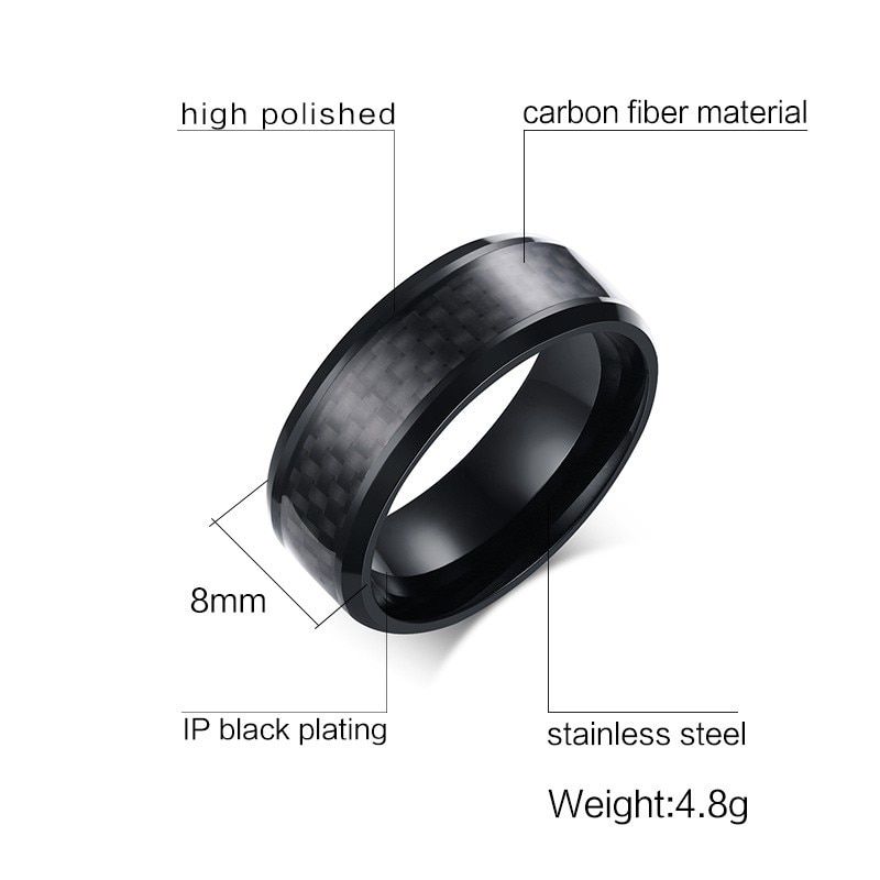 Stainless Steel Carbon Fiber Ring 8mm