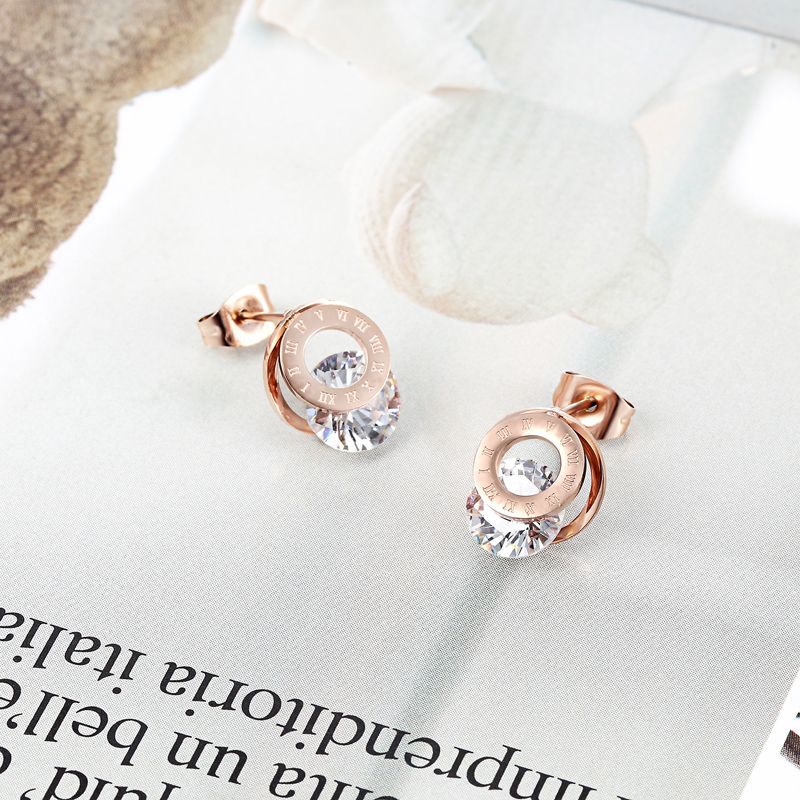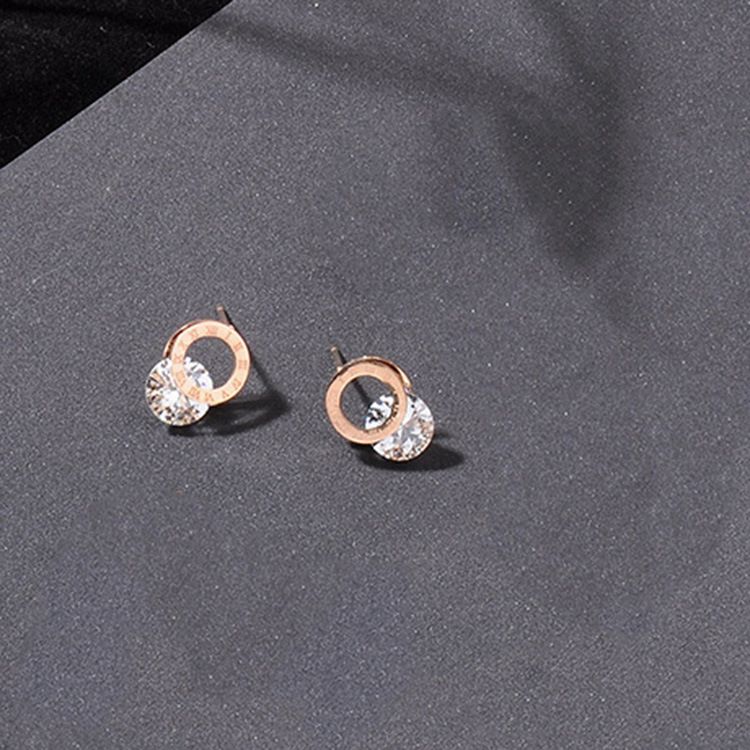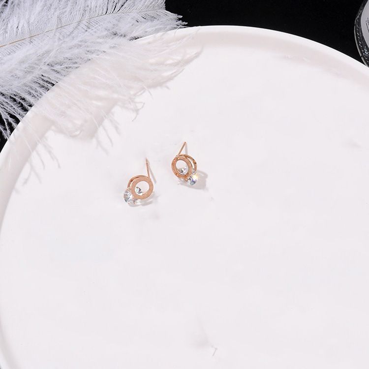 Minimalist Retro Titanium Steel Small Zircon Earrings