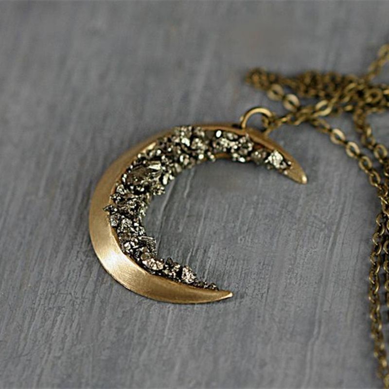 Crystal Gold Crescent Necklace Retro Glamour