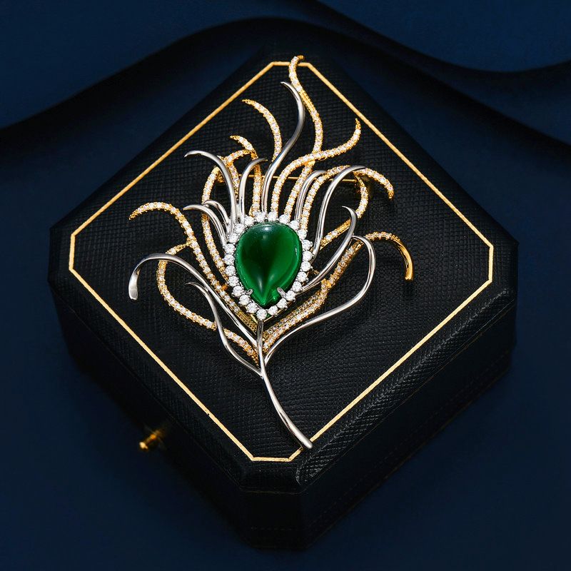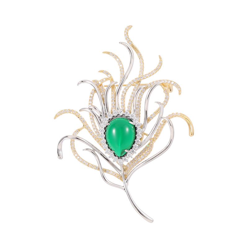 Emerald Zircon Peacock Feather Brooch
