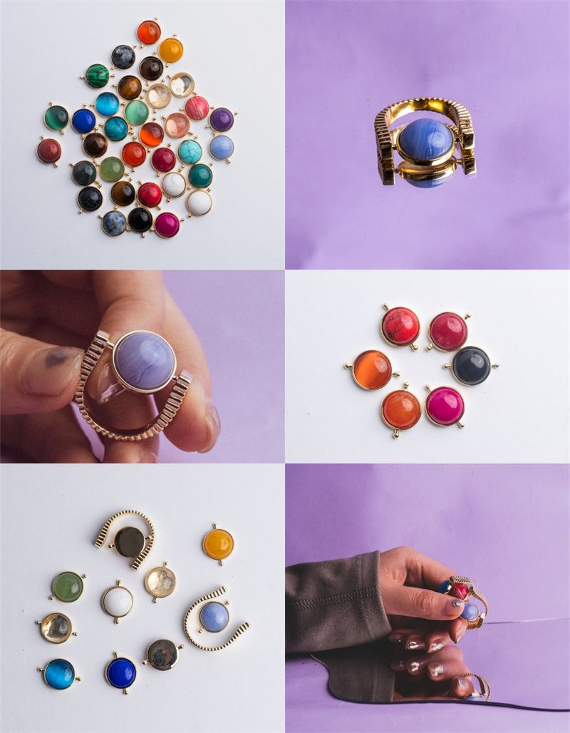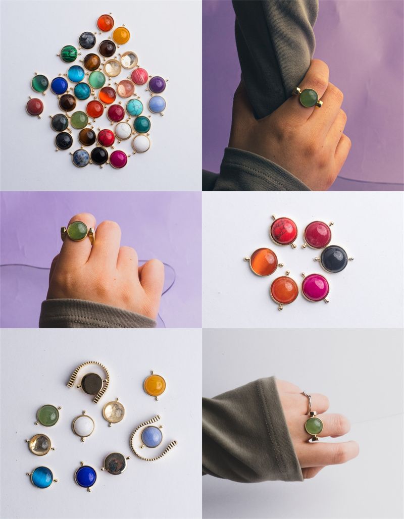 1 Full Ring (1 Ring Base + 1 Natural Stone Spinner + 1 Ring Box) Click Your Fidget Ring When You're Anxious Or Scattered To Help You Feel Calmer And Spinners Whenever You Need New Inspiration To Conquer Your Day! All Our Jewelry Is Interchangeable So You Can Mix And Match Your Favorites To Make The Perfect Piece Of Jewelry. Color: White K, Gold All Gemstones Are Natural Stones, Each Grain Is Different, Please Order Carefully Stone Size: 12*12mm Packing List: 1 Ring Base + 1 Natural Stone Spinner + 1 Ring Box