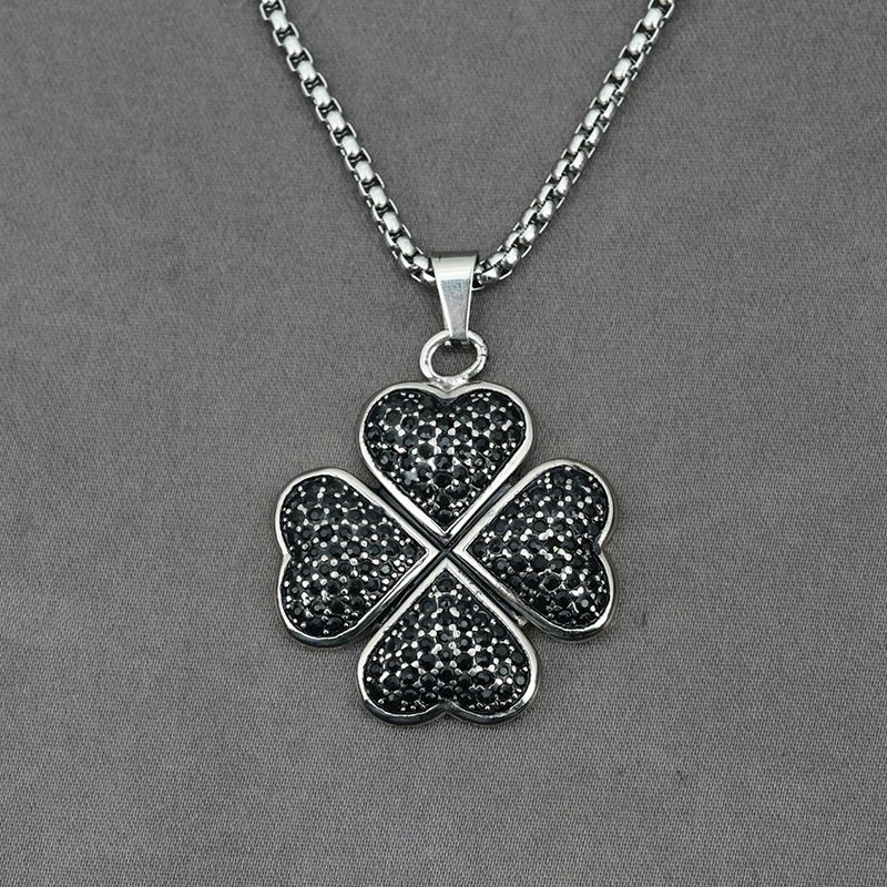 Four-leaf Clover Rhinestone Titanium Pendant