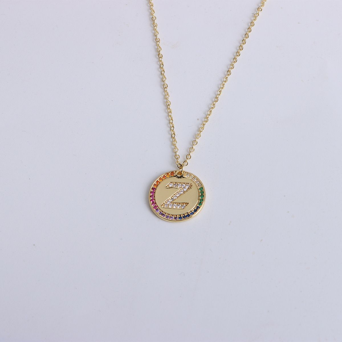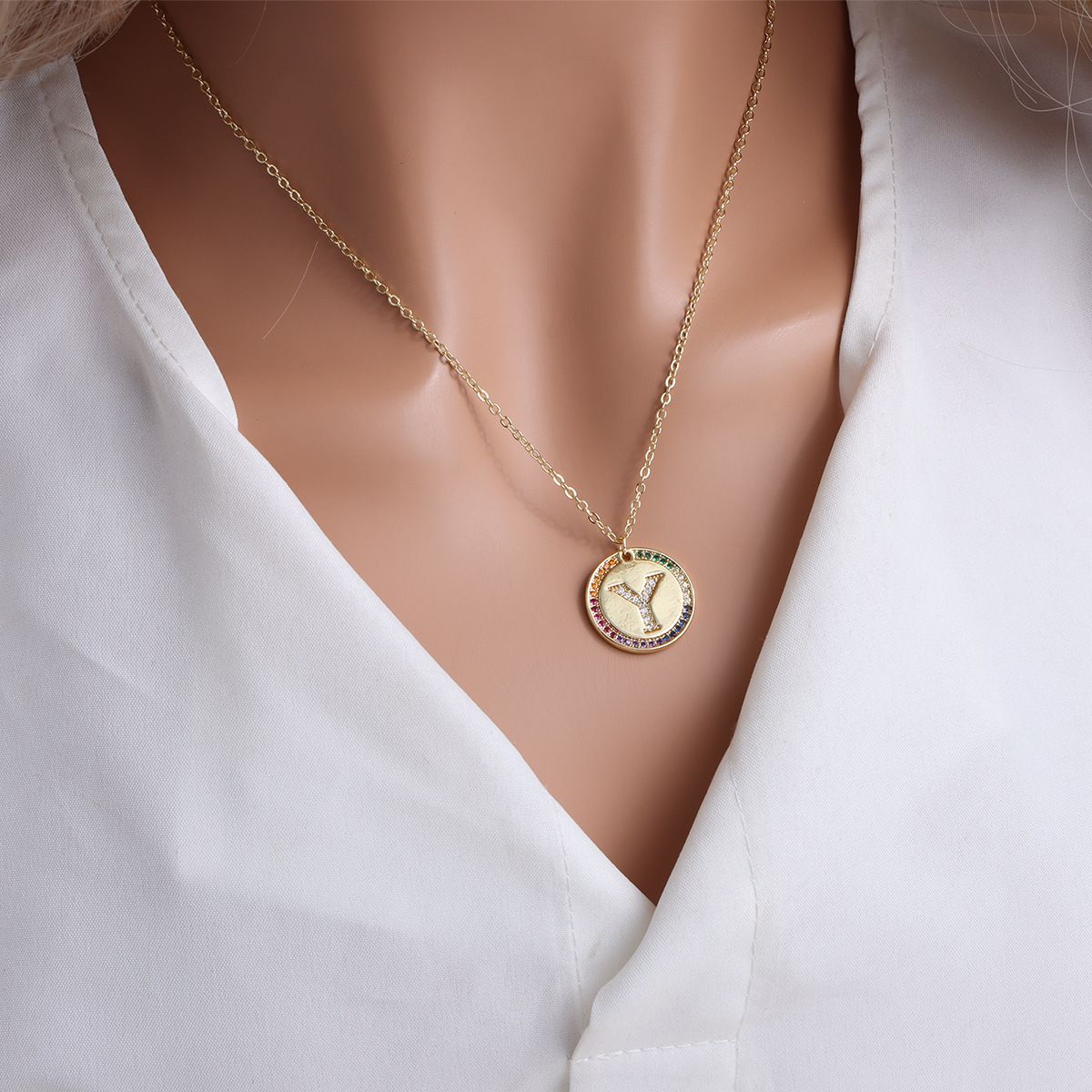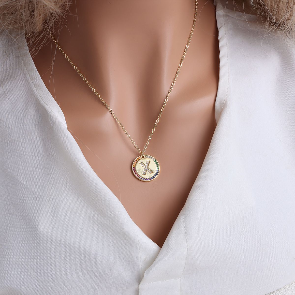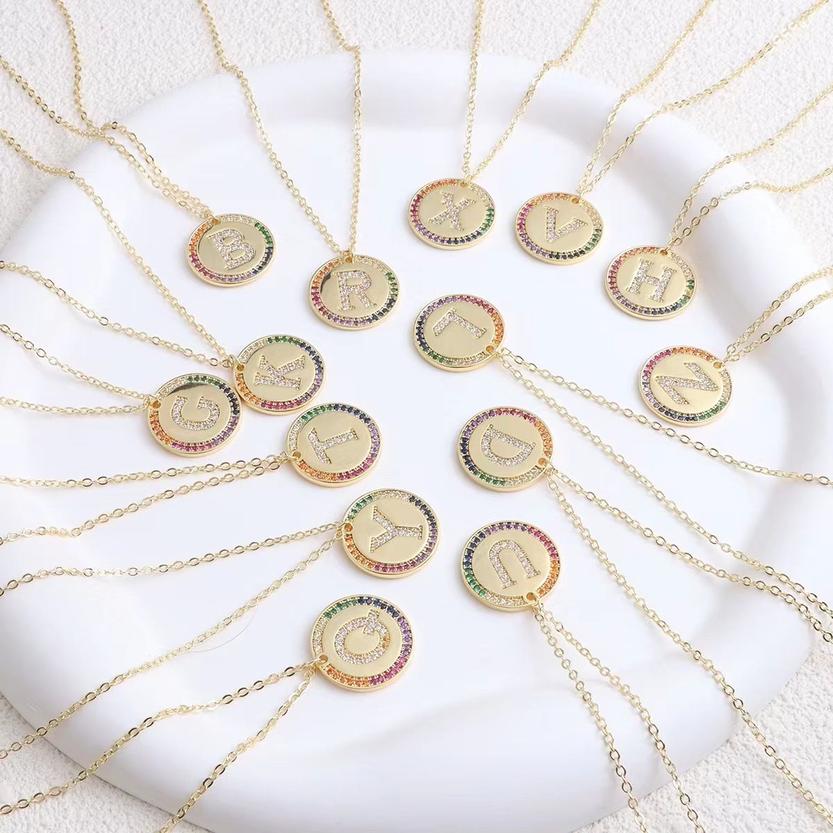 Gold Letter Round Necklace with Crystals