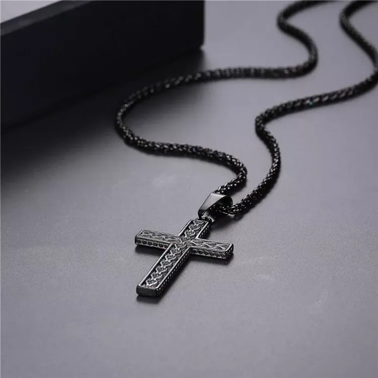 Fashionable Gold and Black Iron Nail Cross Pendant Necklace with Stainless Steel 3mm Round Box Chain