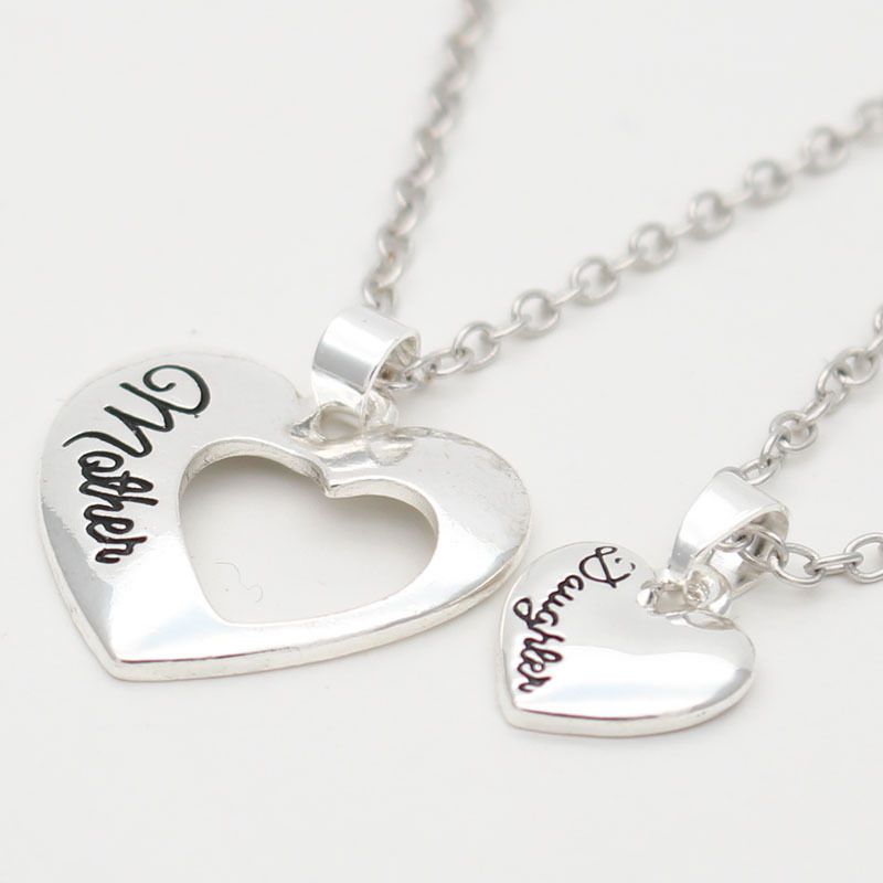 Mother Daughter Necklace Matching Heart Pendant