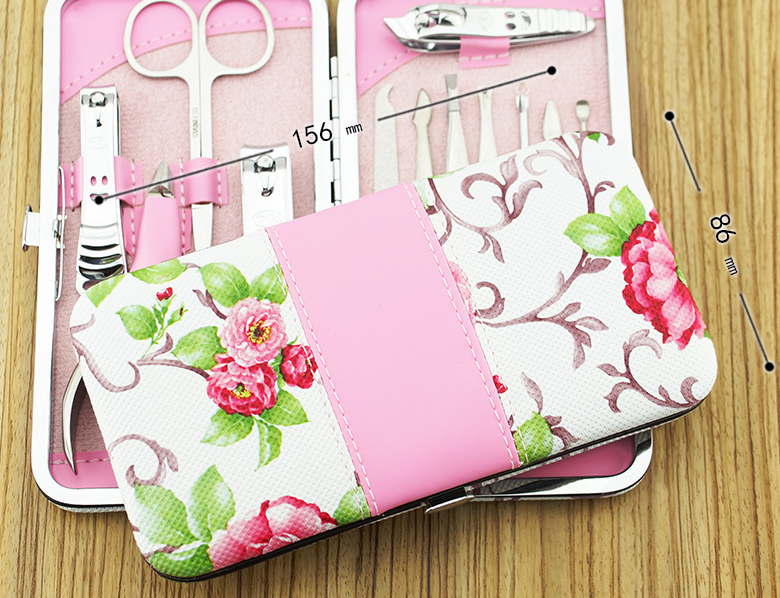 Pink Flower 12-Piece Stainless Steel Nail Clipper and Manicure Set