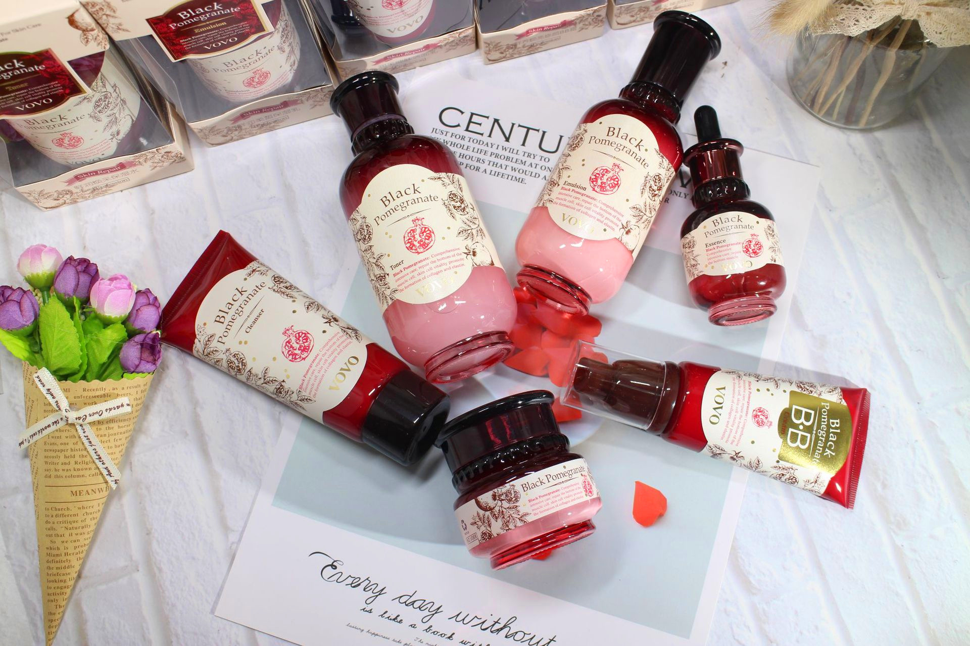 Product specifications: Pomegranate-Water, Pomegranate-Milk, Pomegranate-Cream, Pomegranate-Essence, Pomegranate-Eye cream, pomegranate-Cleanser