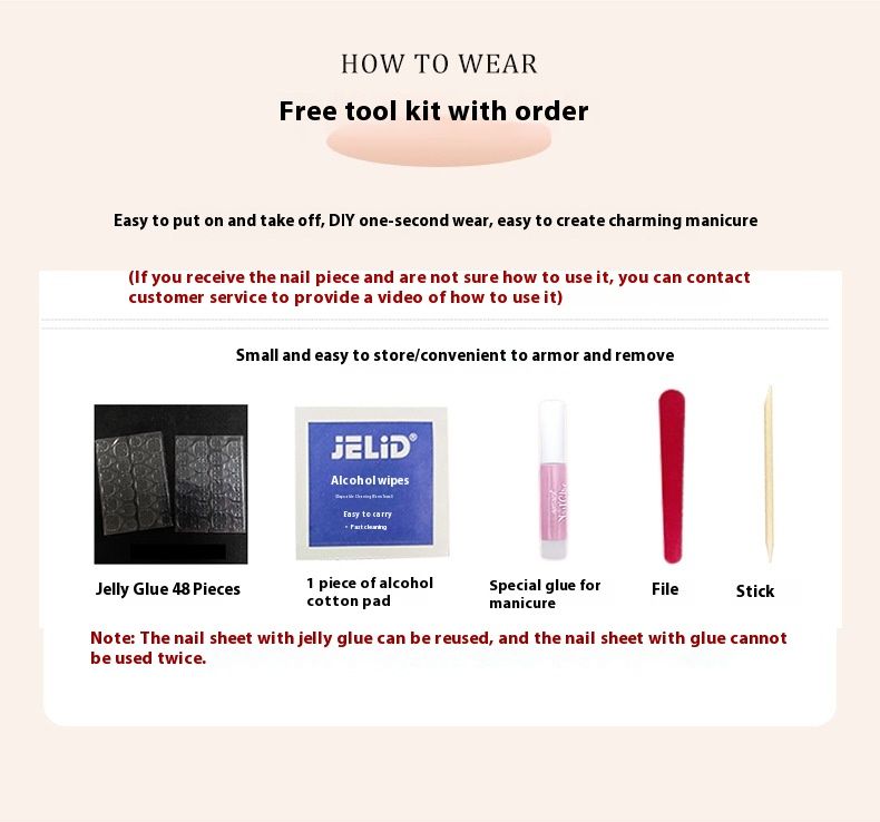 Packing list: Wearing armor * 10, Alcohol cotton pads, Nail files