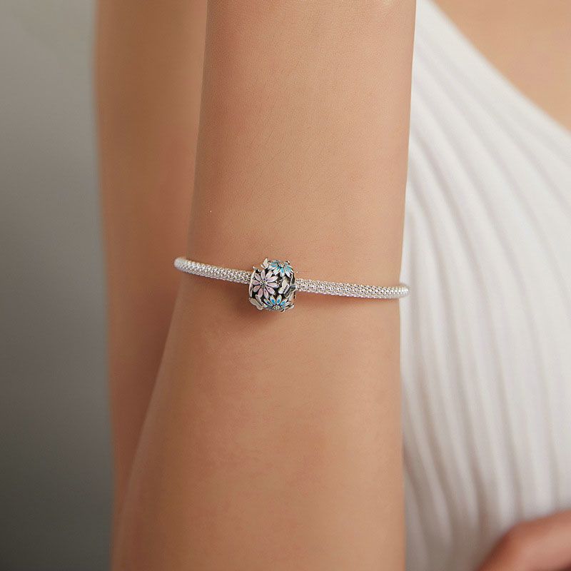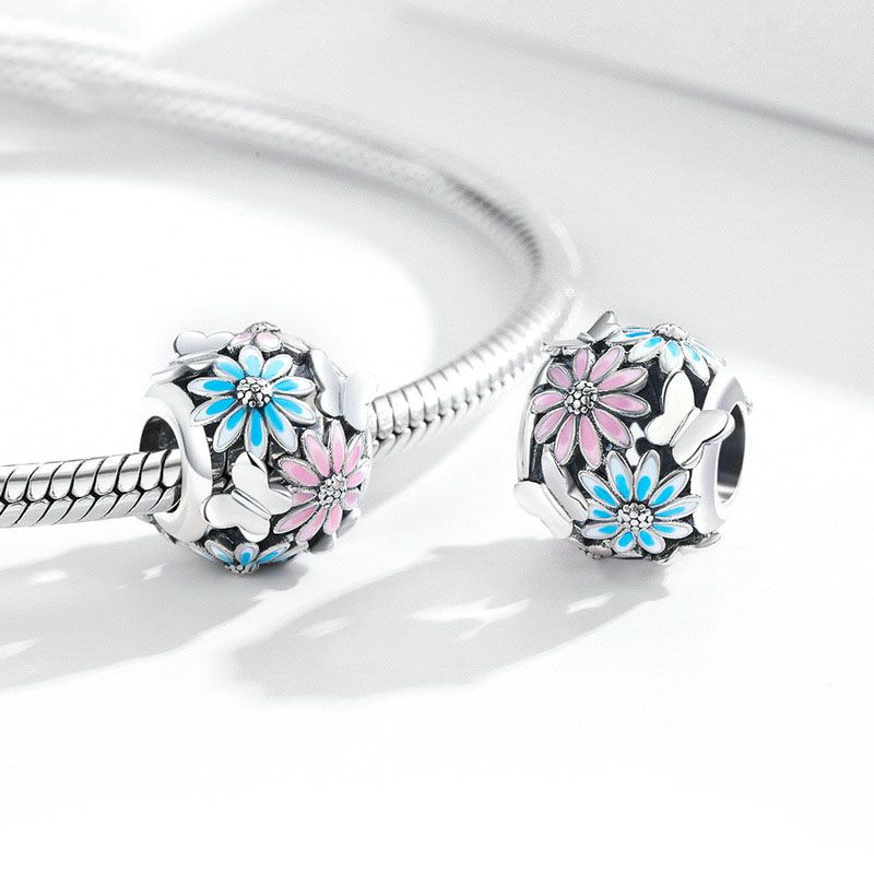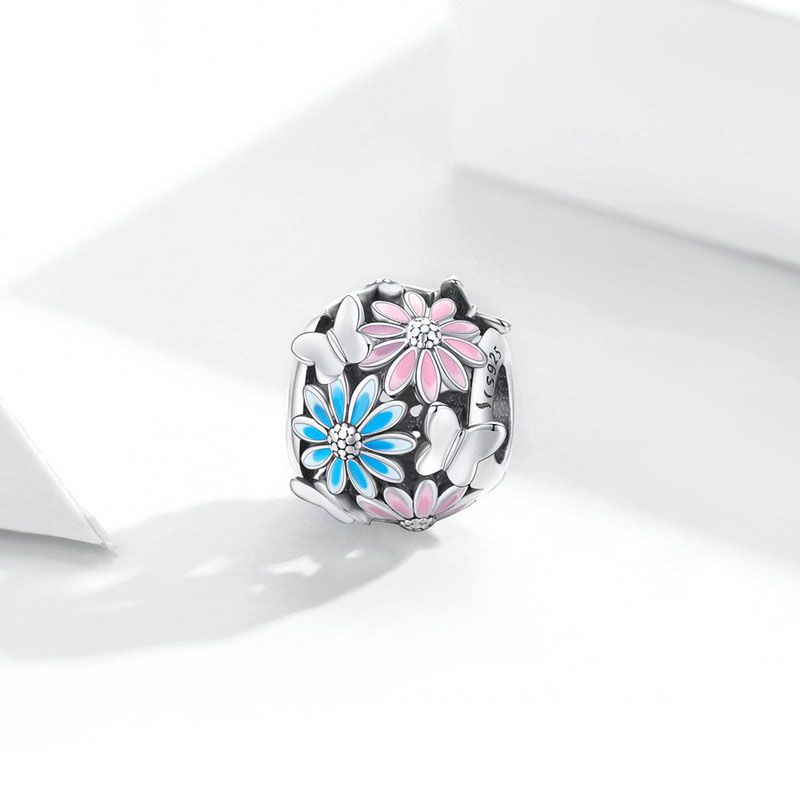 Silver Daisy Butterfly Beaded Charm