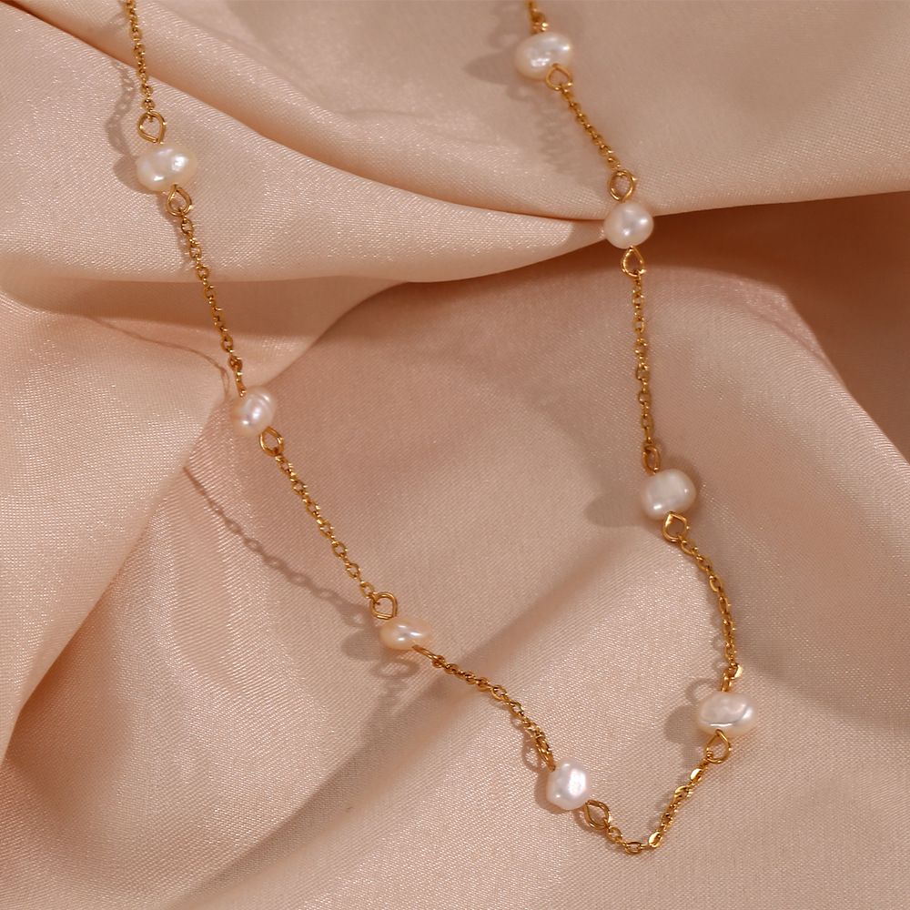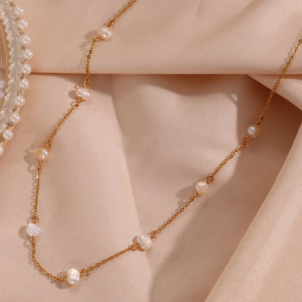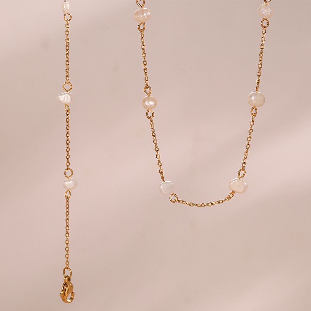 Color: Freshwater Pearl Bracelet-Gold, Freshwater Pearl Chain Necklace