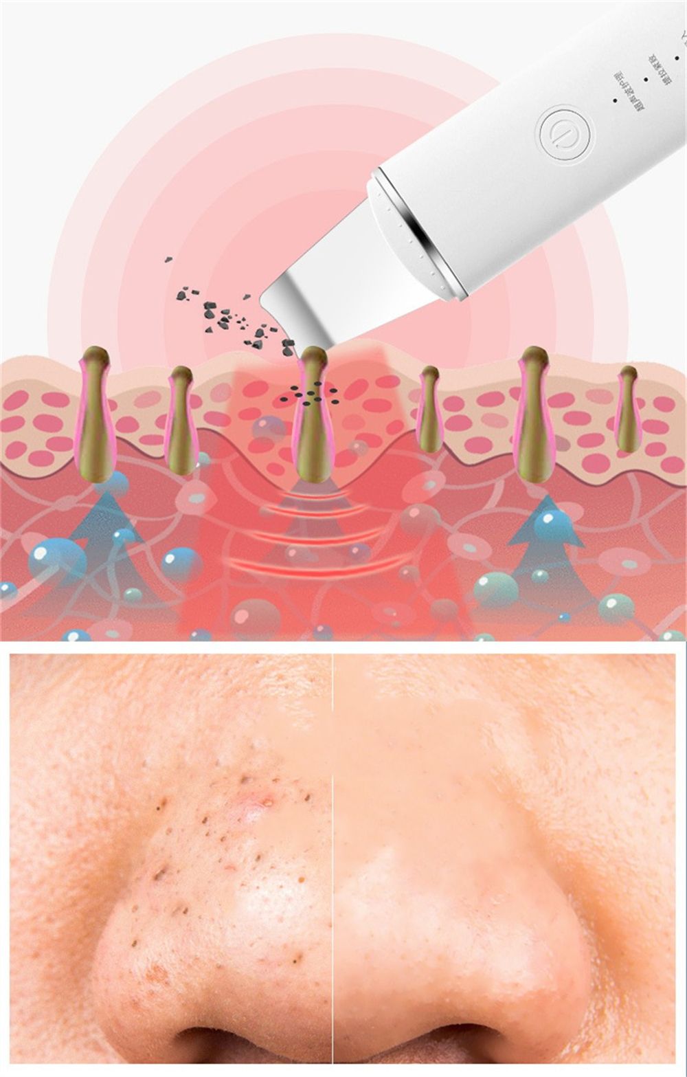 This product combines two skin care treatments: 1. The deep cleansing treatment uses continuous waves to remove dead cells on the skin surface, leaving your skin refreshed, rejuvenated and super smooth. 2. Sonophoresis treatment uses pulse waves to increase the permeability of the skin and help the effective absorption of the essence. This combined with increased ultrasound circulation helps plump the skin and reduce the appearance of fine lines and wrinkles.