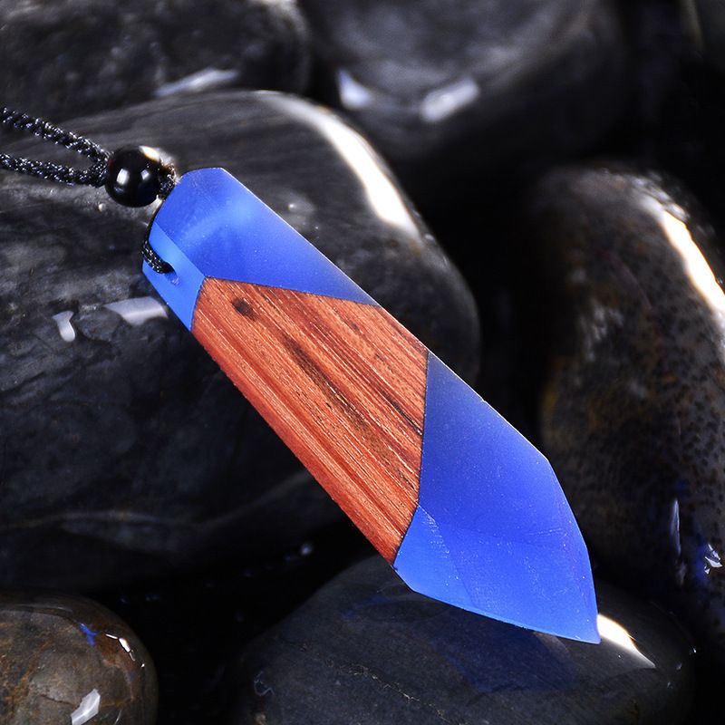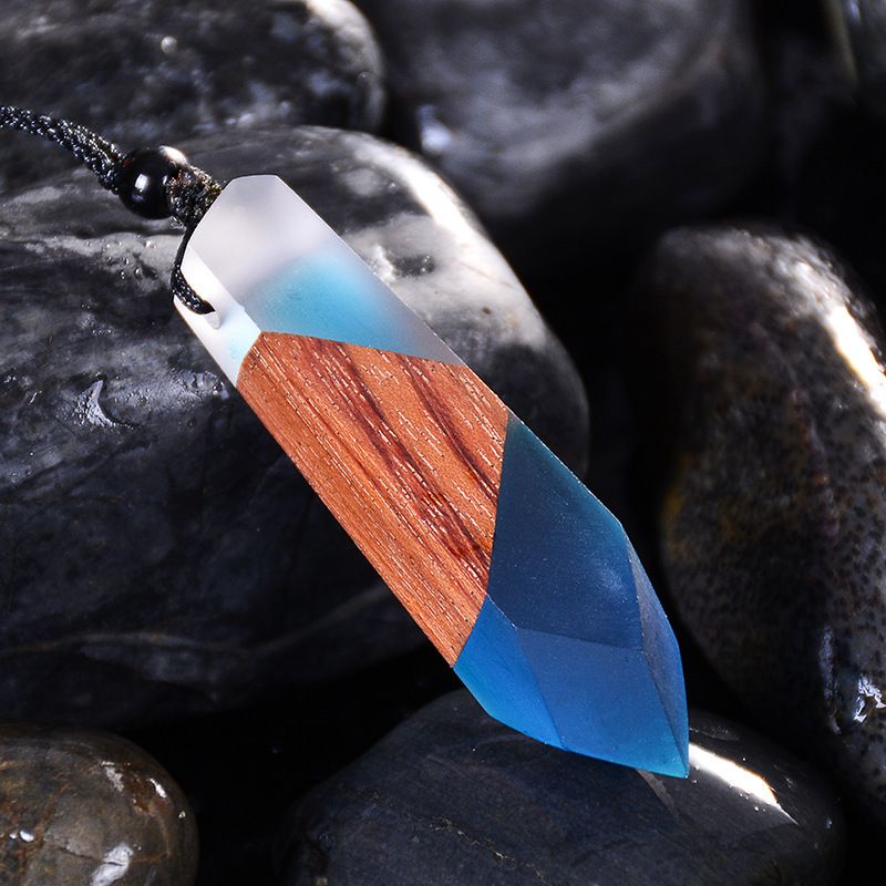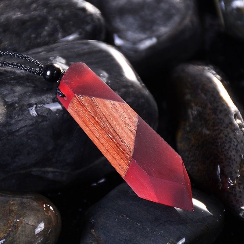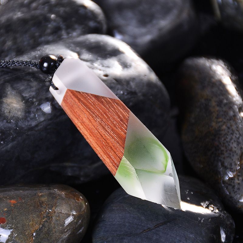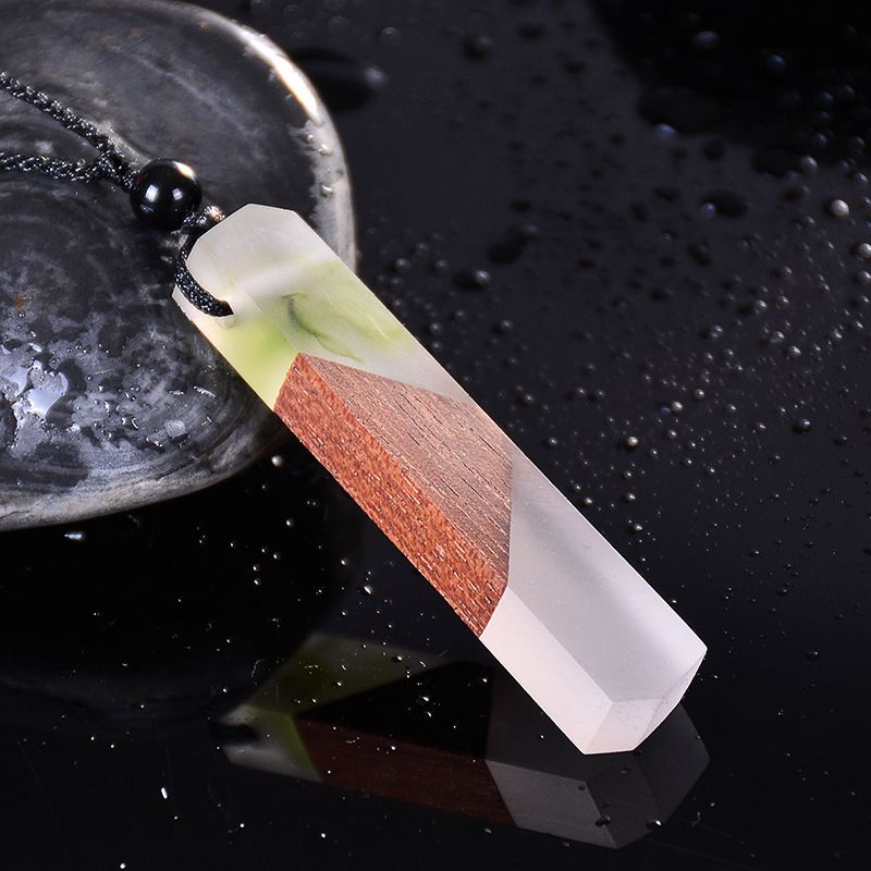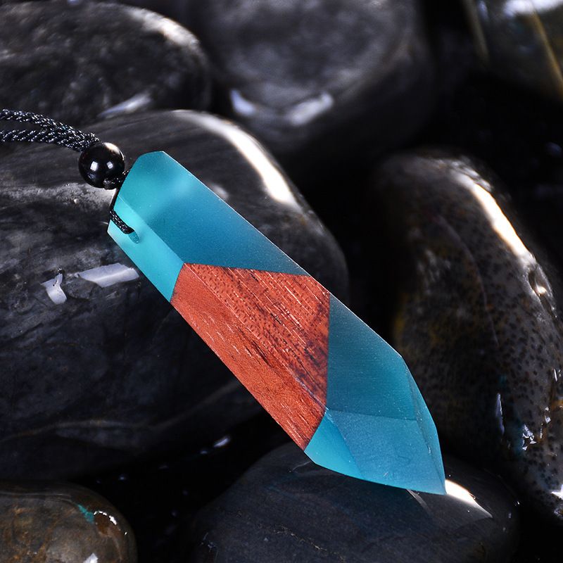 Vintage Wood Necklace Pendant Woven Chain